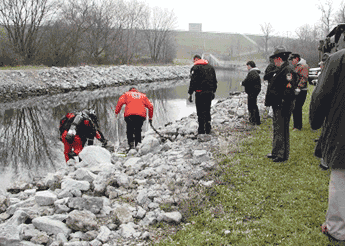 Department personnel assist in underwater rescue.