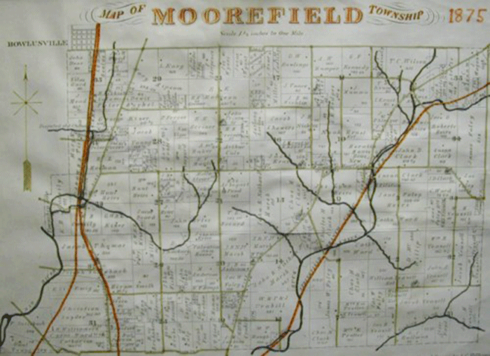 The first known settlers arrived in what is now Moorefield Township in 1799 and were part of a colony of five men, plus wives and children that came from Kentucky and included Simon Kenton. They made their first homes along Urbana Pike which was at that time a cleared path through the forest. Other settlers followed in the early years of the nineteenth century and made their homes throughout the area that would become Moorefield Township, which was officially organized in June, 1818.
